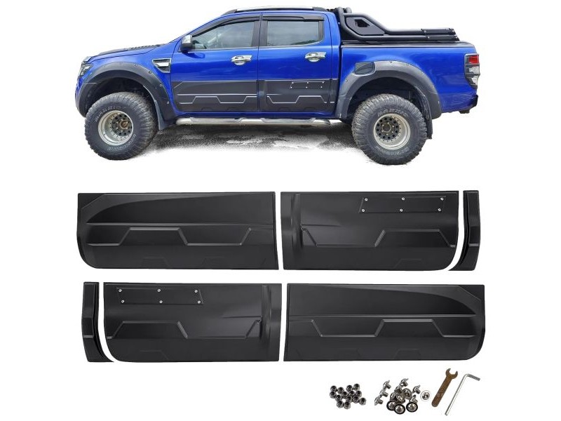Boční plastové lišty na dveře pro Ford Ranger (rv. 2012-2023) v černé matné barvě