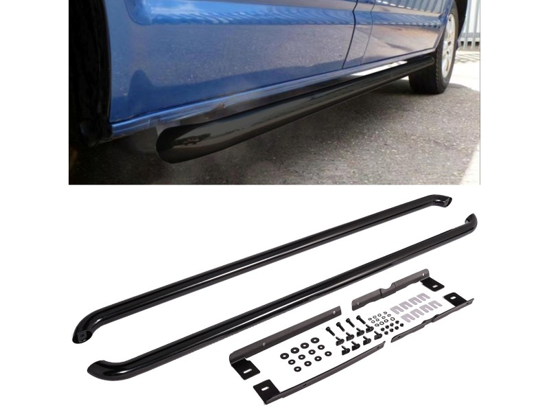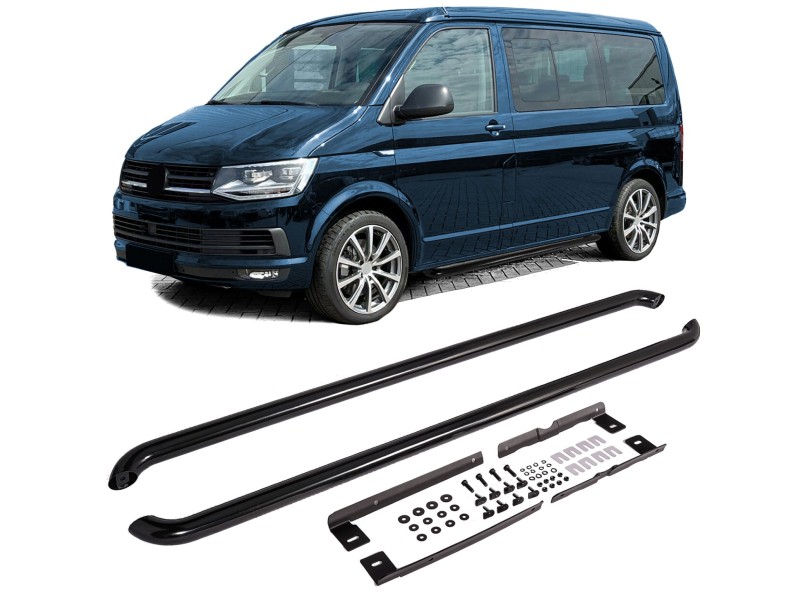 Nerezové boční nášlapy / stupačky pro Volkswagen Transporter T5/T6/T6.1 (rv. 04/2003-2024) v černé barvě pro dlouhé verze