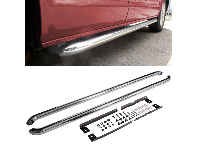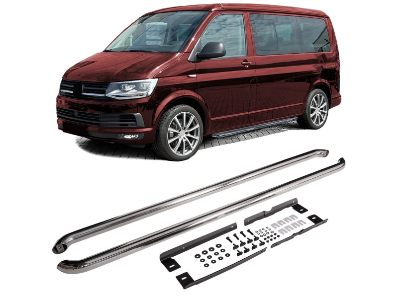 Nerezové boční nášlapy / stupačky pro Volkswagen Transporter T5/T6/T6.1 (rv. 04/2003-2024) ve stříbrné barvě pro dlouhé verze