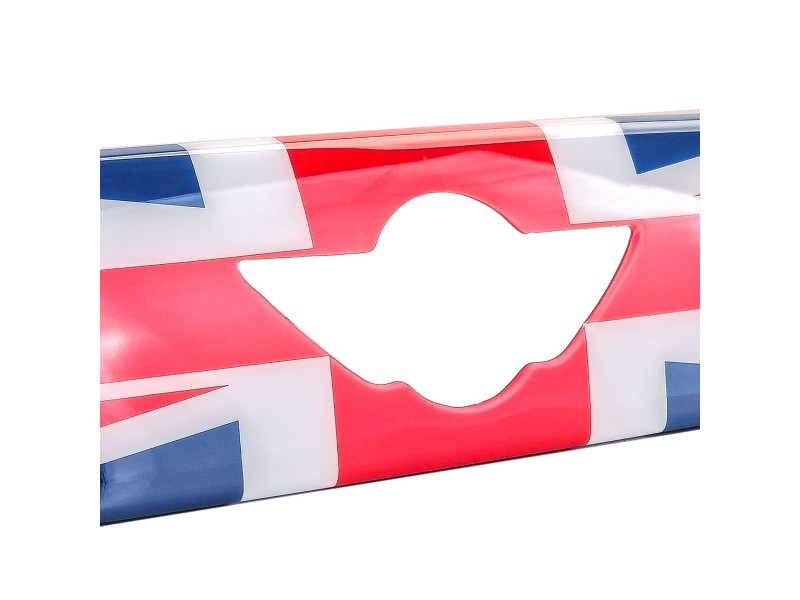 Plastová lišta nad SPZ v barvách britské vlajky pro předfaceliftový model Mini F55/F56/F57 (rv. 2013-2017)