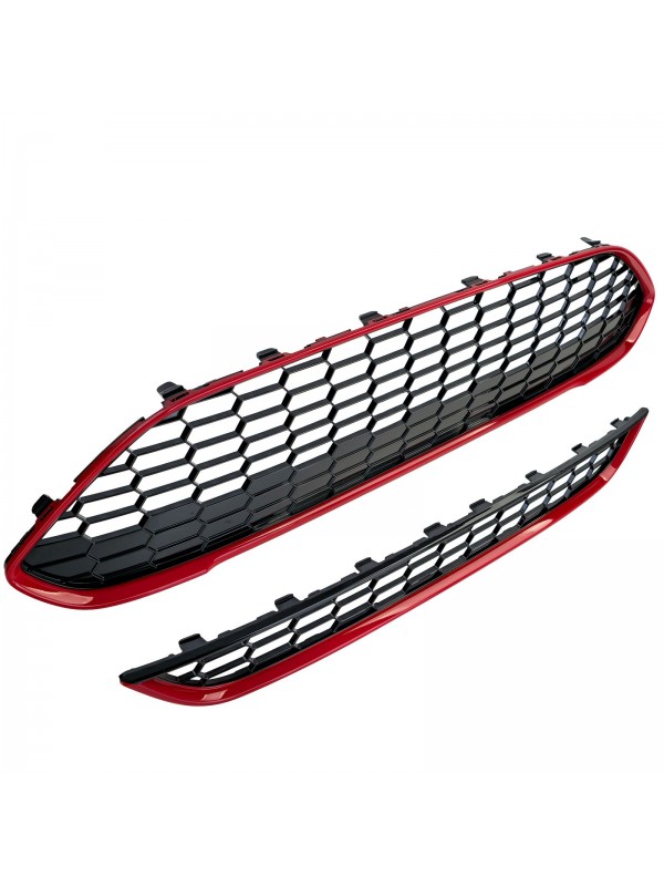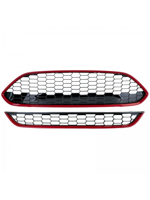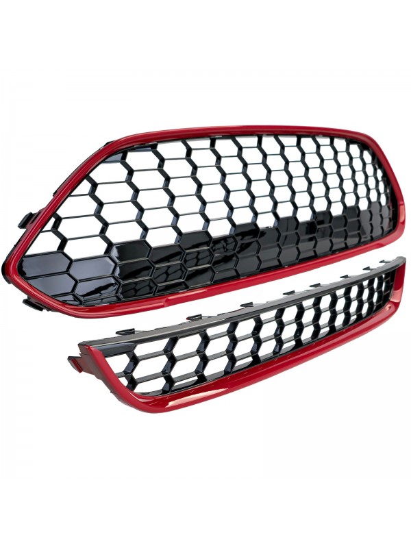 Černá lesklá sportovní maska bez znaku s červeným rámečkem pro Ford Fiesta (rv. 2013-2017 facelift)