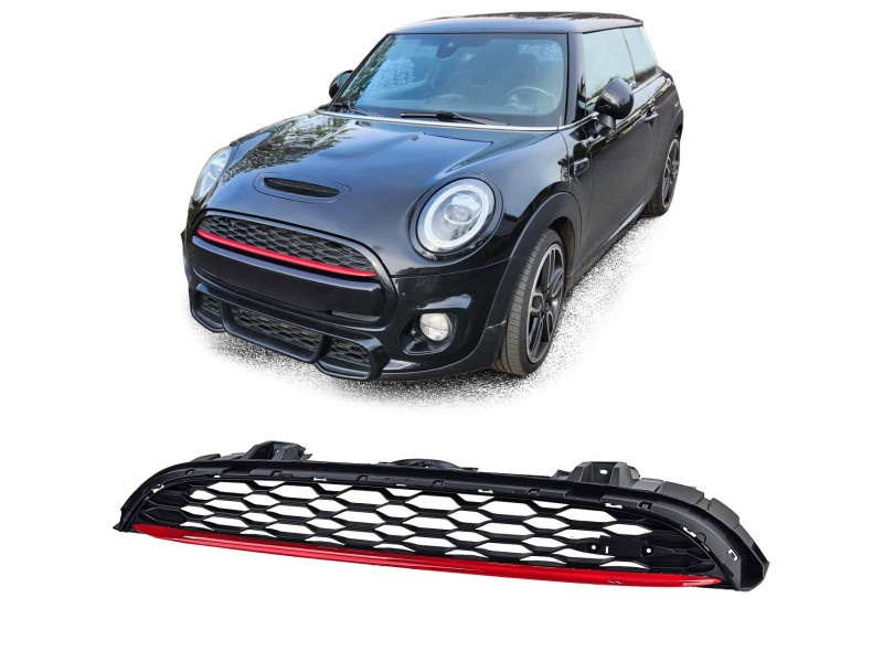 Černá lesklá sportovní maska s červenou lištou pro Mini One/Cooper F55/F56/F57 (rv. 2014-2020)