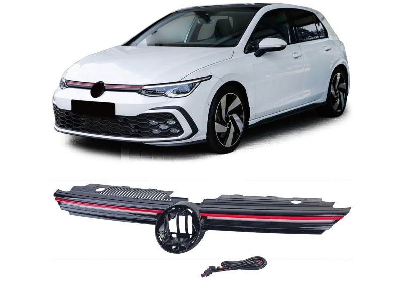 Černá lesklá maska s červenou lištou a LED podsvícením pro Volkswagen Golf 8 (od rv. 2018)