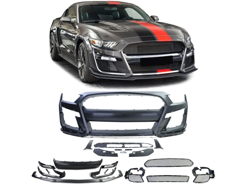 Přední nárazník ve stylu Shelby GT 350 pro Ford Mustang (rv. 12/2014-07/2017) včetně mřížek, lipa spoileru a montážního materiálu