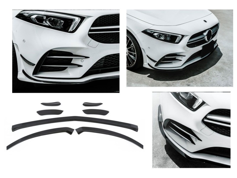 Sada předních spoilerů pro Mercedes Benz A W177 AMG line & A35 AMG v černém lesku (7 ks)